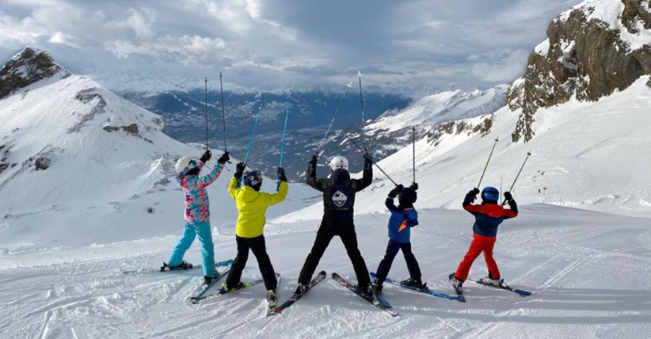 Ultimate organise des cours collectifs de ski et de snowboard pour enfants, en petits groupes de 3 à 6 participants maximum.