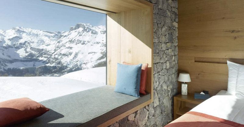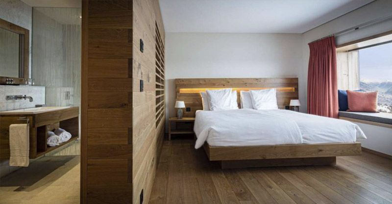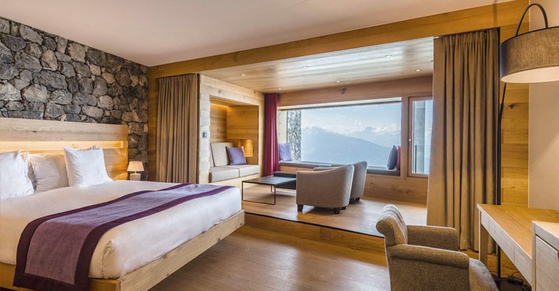 The new dimension of comfort: The splendid view of Crans Montana plateau and the Southern Alps bathed in the reddening sunsets make it an outstanding vista. They are 50m2 (525 sq ft) and consist of a bedroom and "cozy" corner wich can be created by a thick curtain.